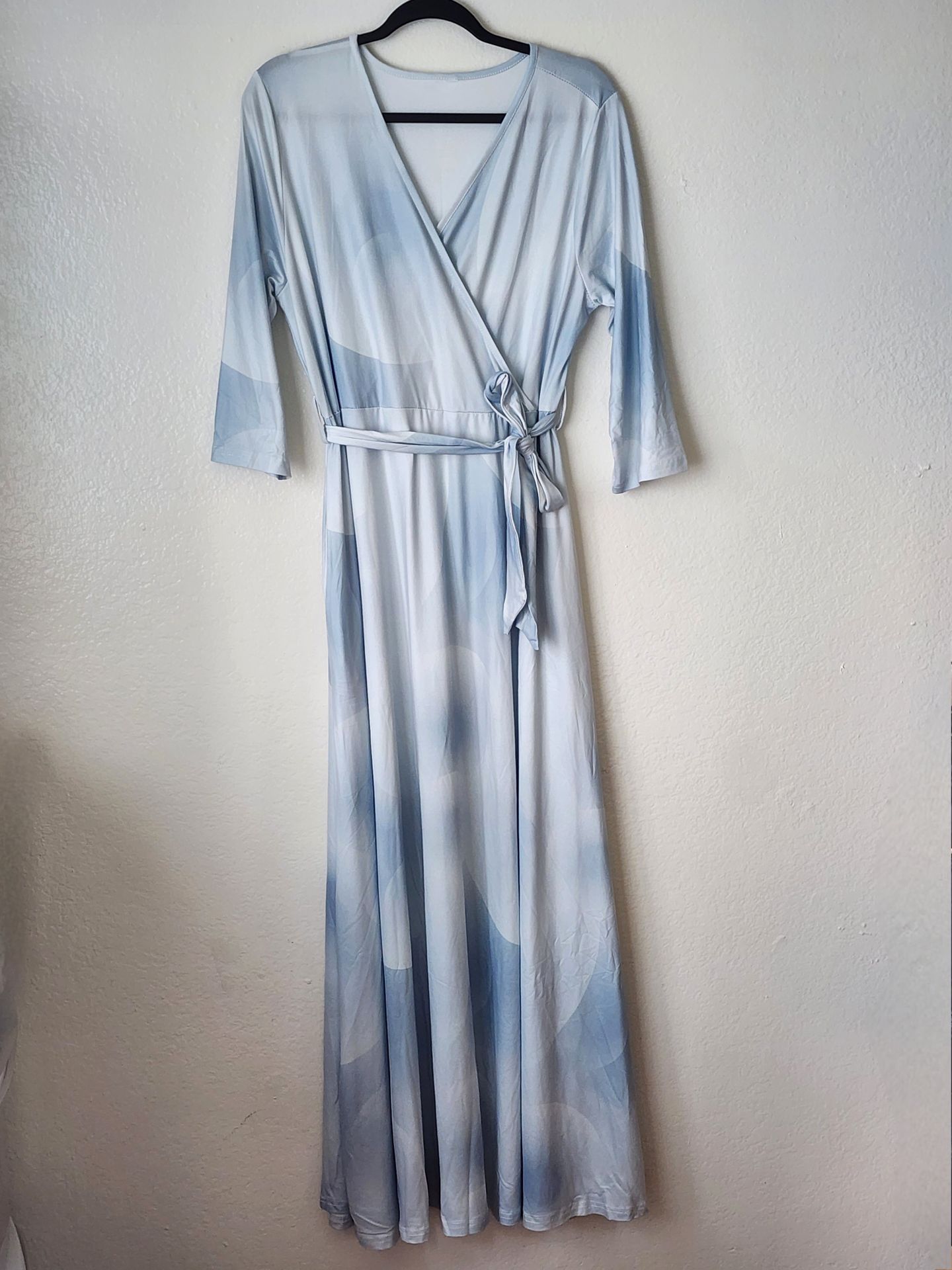Perfect for bridesmaid New- women's dress spandex material very soft with side pockets. Color is light blue/white size is 2XL runs small adjust to the body perfectly wedding /baby Shower dress Pick-up only in Orange $30