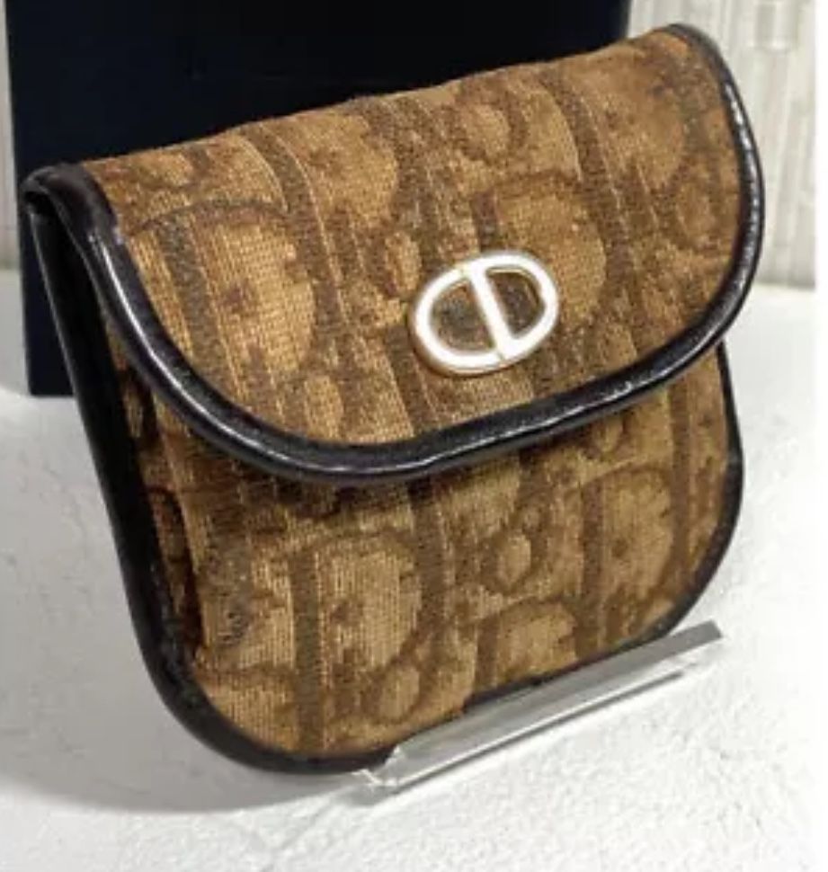 Christian Dior Trotter Vintage Canvas Leather Compact Wallet Coin Purse Authentic used