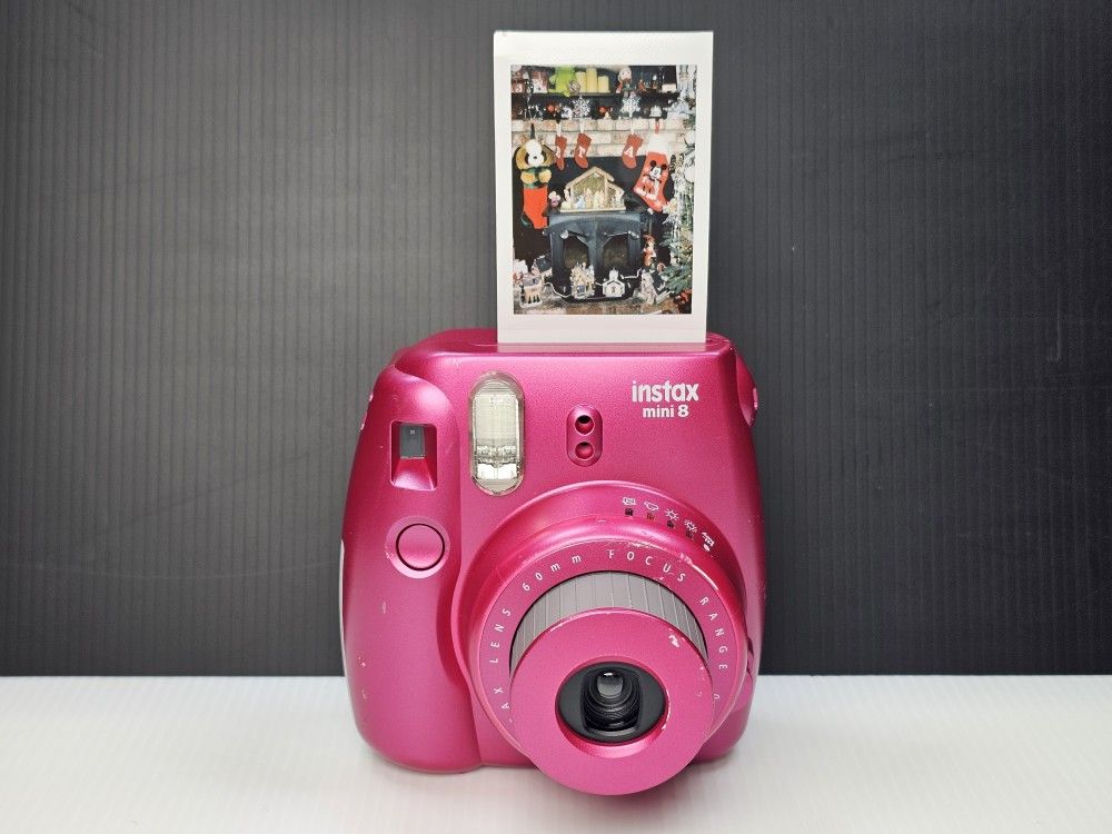 Fujifilm Instax Mini 8 Instant Film Camera Pomegranate Red. In fair cosmetic condition. Film tested working and ready to shoot. It's loaded with 5 color shots left. Check out the sample picture from this camera.