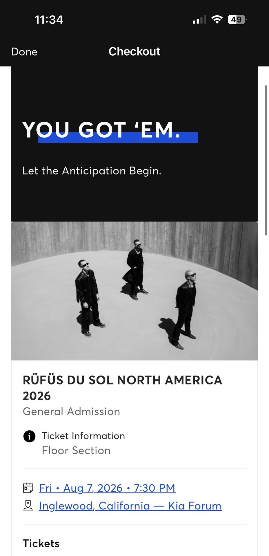 Rufus Du Sol Floor Ticket