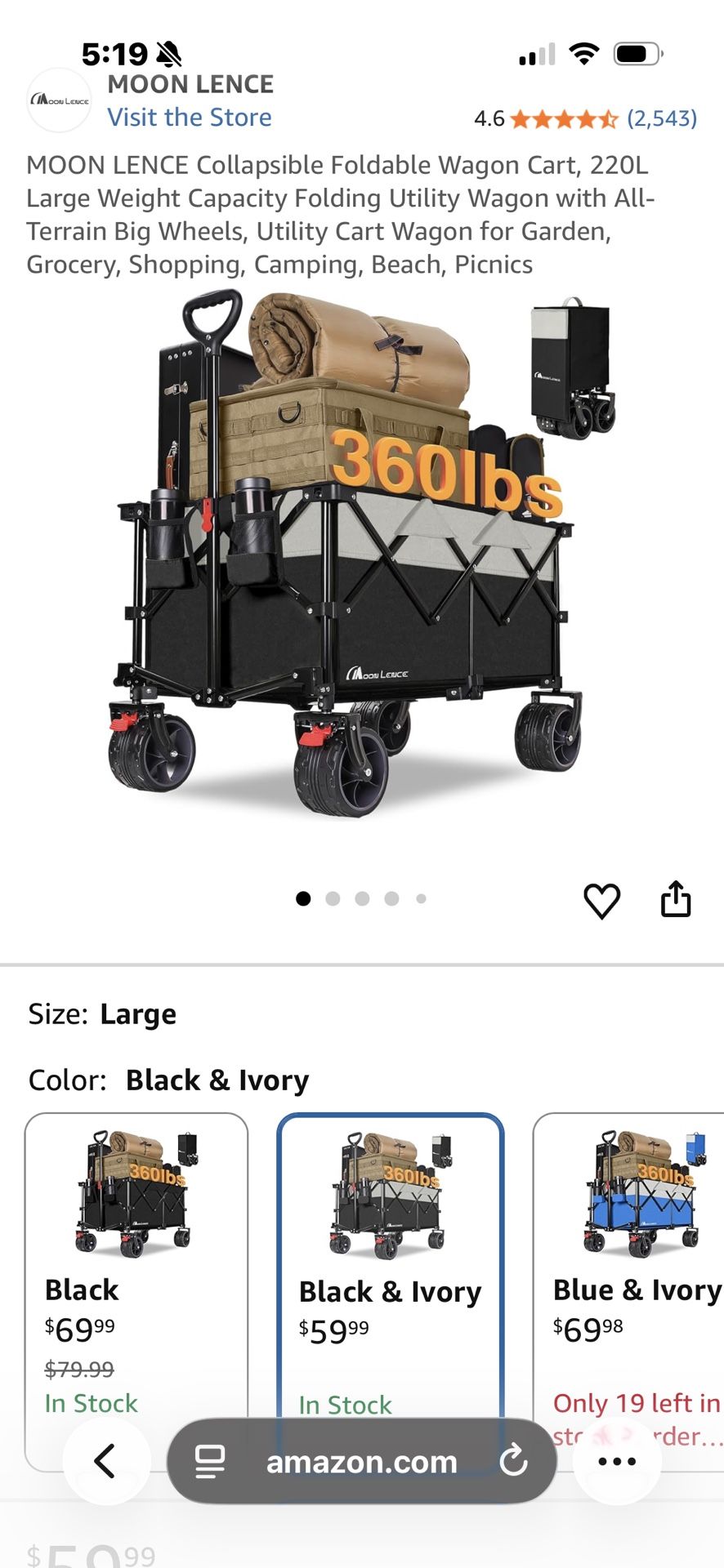 New Large folding wagon all black 360lbs weight limit. All sales are final.