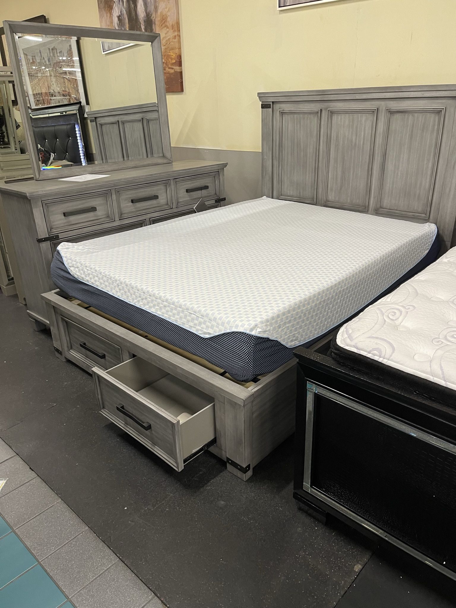 Queen Bed Room Set( Queen Bed Frame, Dresser, Mirror, 1 Night Stand) ON SALE