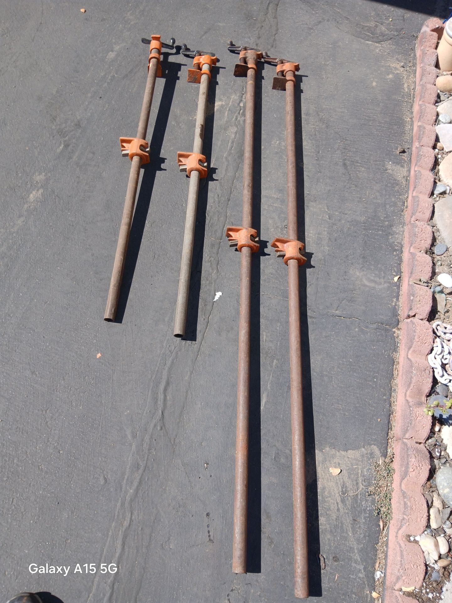 Pony strong and sturdy industrial strength pipe Clamps 2 are 5ft. Long and 2 are 40" long, all 4 in perfect working condition, asking $25 each or buy all 4 for $85.00.