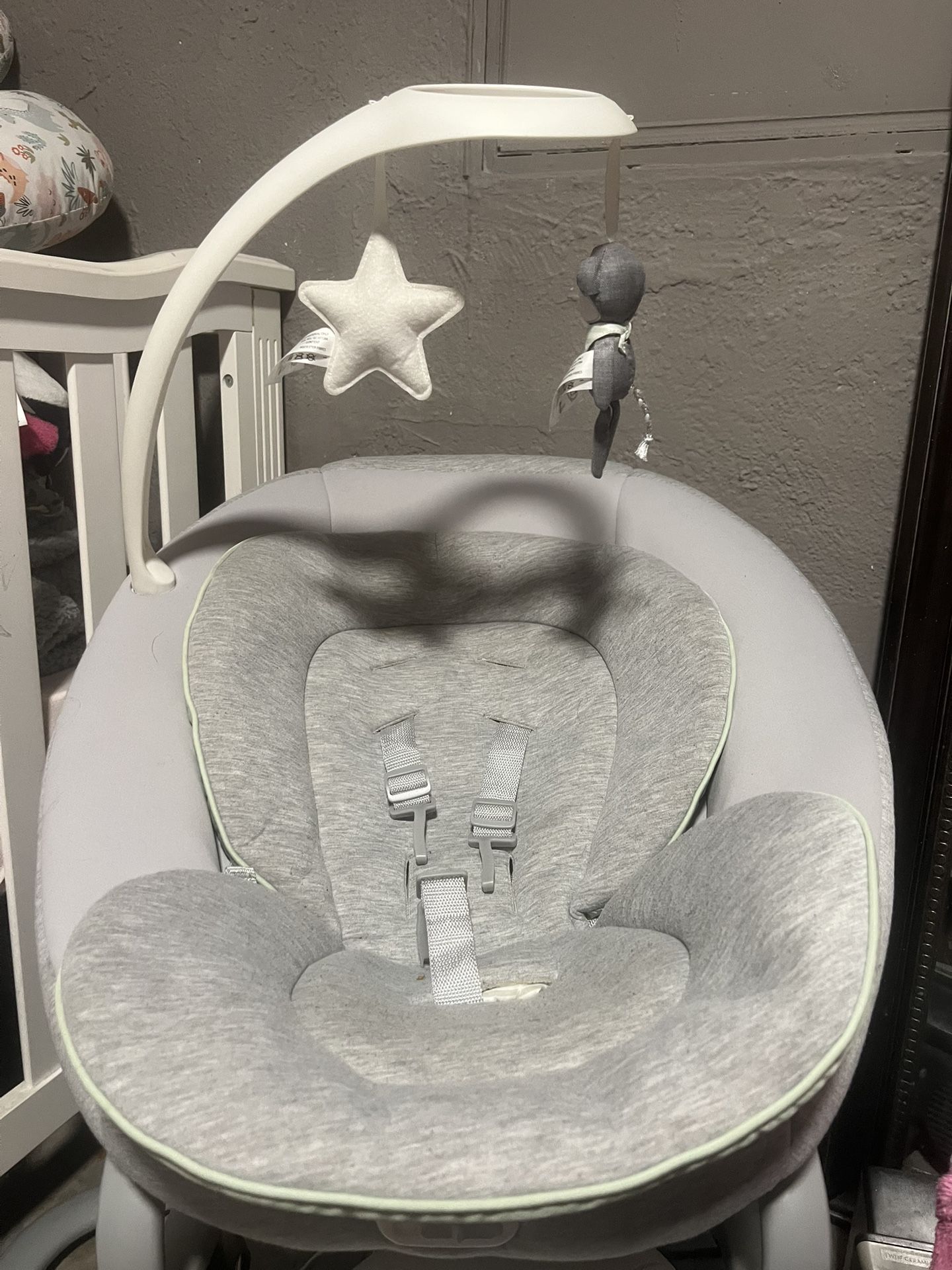 almost new, only used a few times, has many different swing modes and settings, different sound noises such as music and white noise and able to adjust volume. want to get rid of, send offers