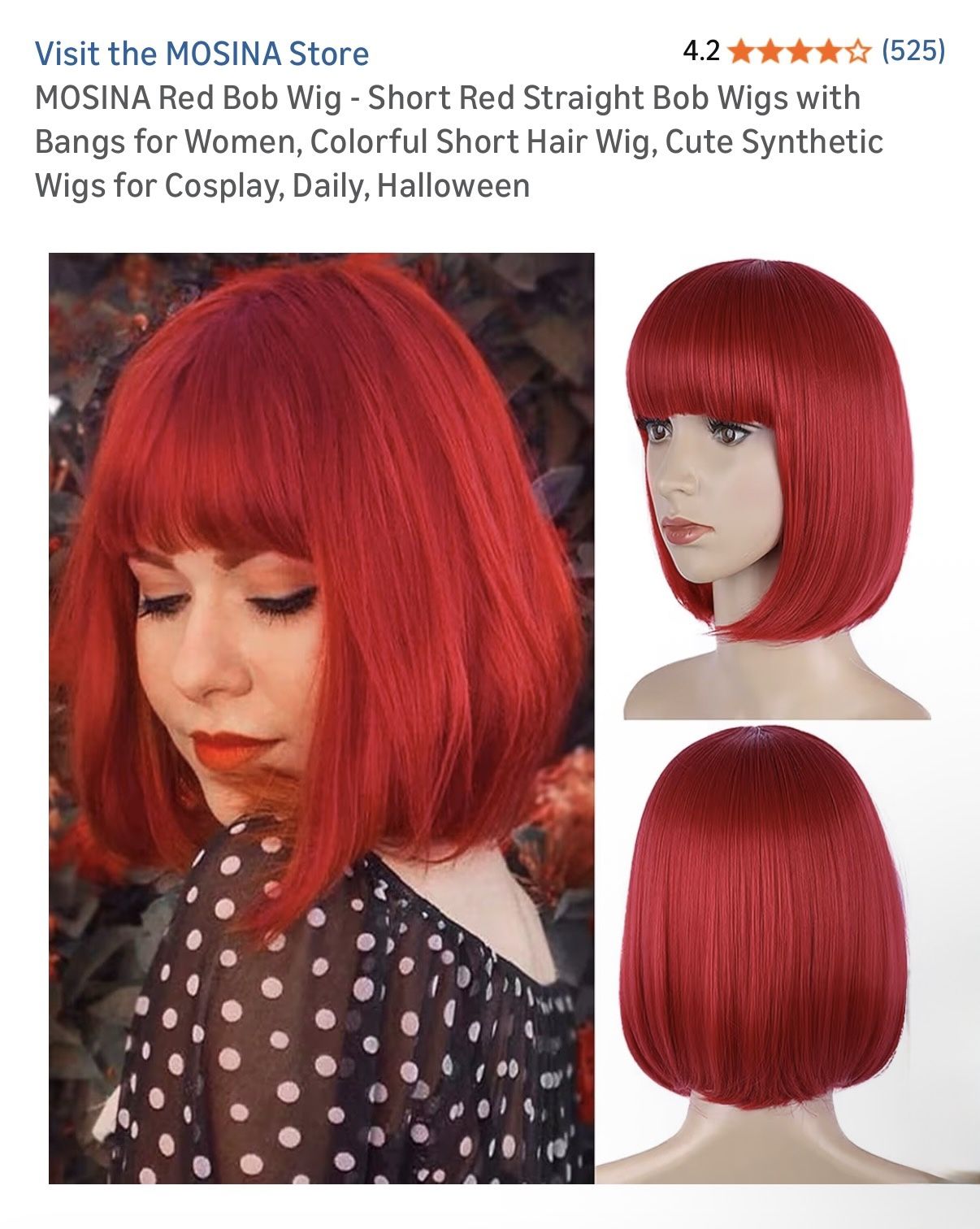 MOSINA Red Bob Wig - Short Red Straight Bob Wigs With Bangs For Women, Colorful Short Hair Wig, Cute Synthetic Wigs For Cosplay, Daily, Halloween 13