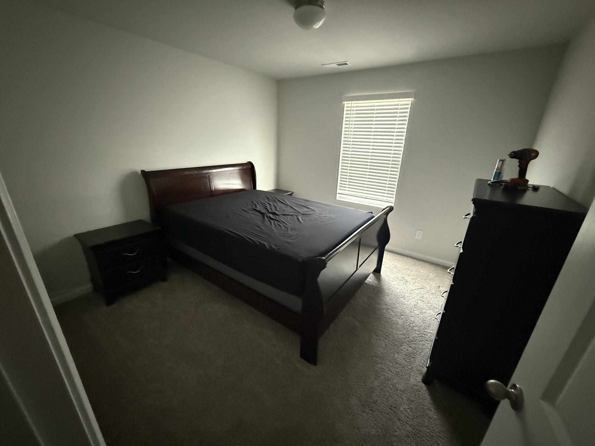 Ashley Sleigh bed with a box spring. The box spring is less than a year old, had it in our guest room but with a baby on the way we need to convert it to a nursery. We also have the mattress from that guest room that is 6 months old, it has been used less than a dozen times and always had a mattress cover. Would like $450 for the bed frame, box spring and mattress, or $250 for the bed frame and box spring. Let me know if you have any questions, thanks.