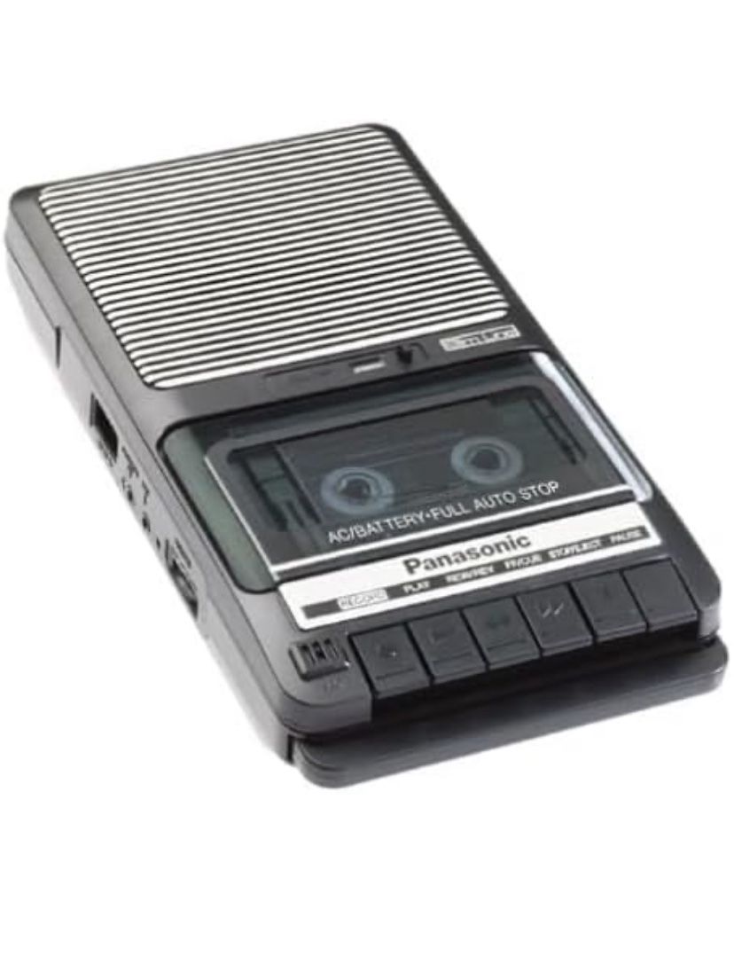 Grabadora de cassette portatil -Funciona con pilas o corriente electrica -contador de revoluciones -Boton para grabar