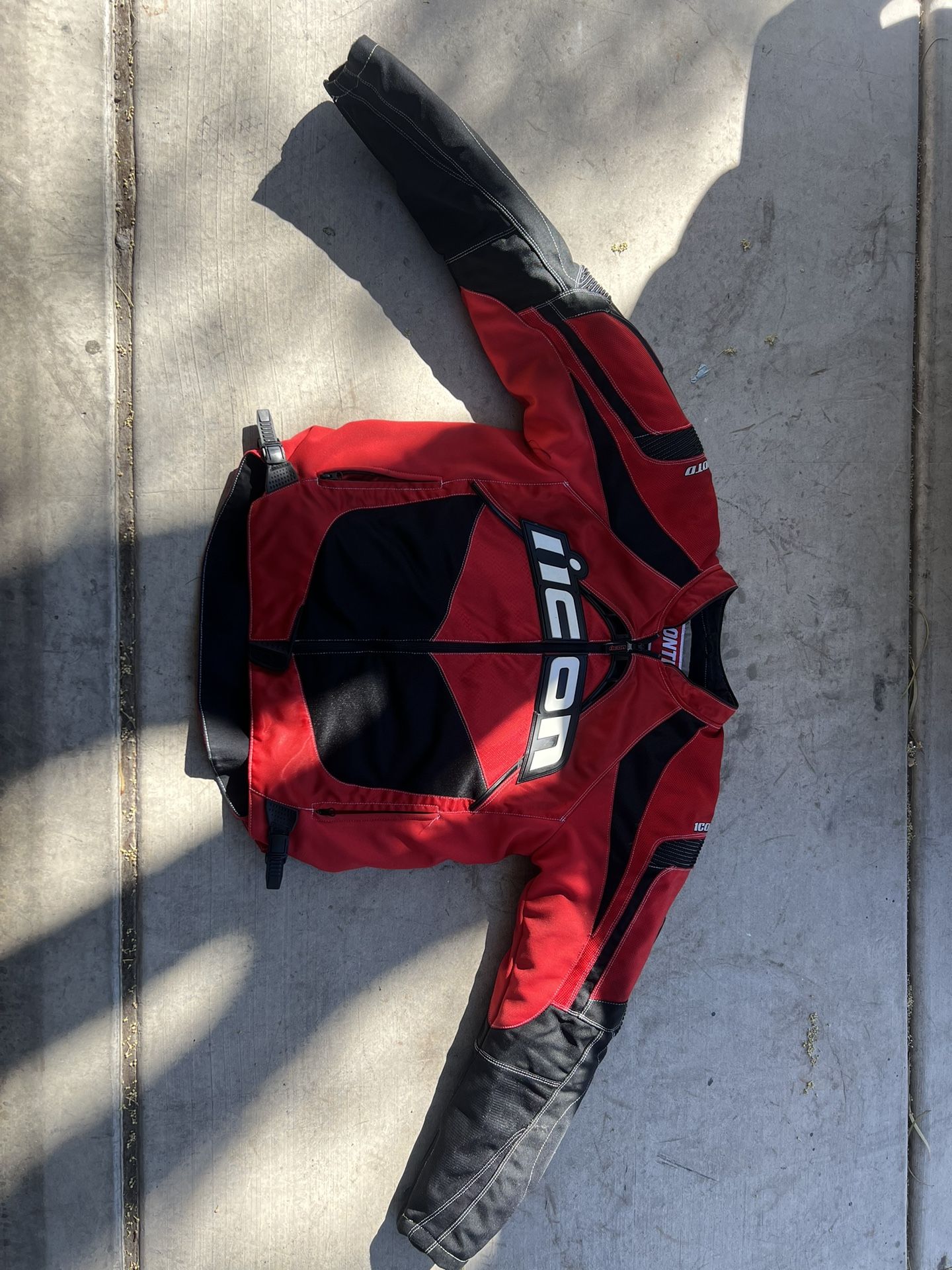 Icon Contra Full Zip Insulated Textile Motorcycle Jacket Red Black Mens Size XL