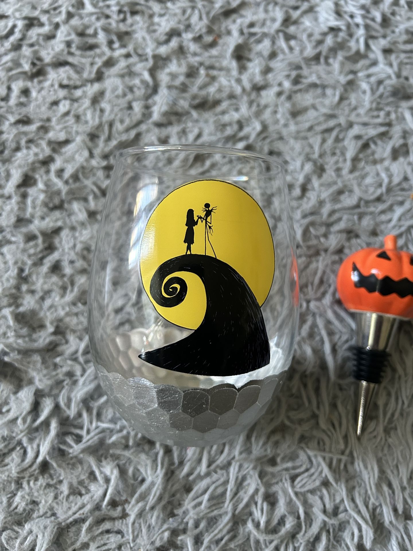 Nightmare before Christmas wine glass with a bottle stopper. Never used. Cash only asking for $10 OBO