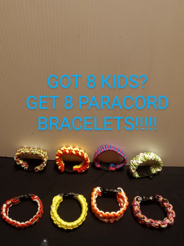 8 woven paracord bracelets... New never worn... One price for all eight... Will make a great gift for eight children... Or adults!!?! Sorry...Price is firm please don't make offers...
