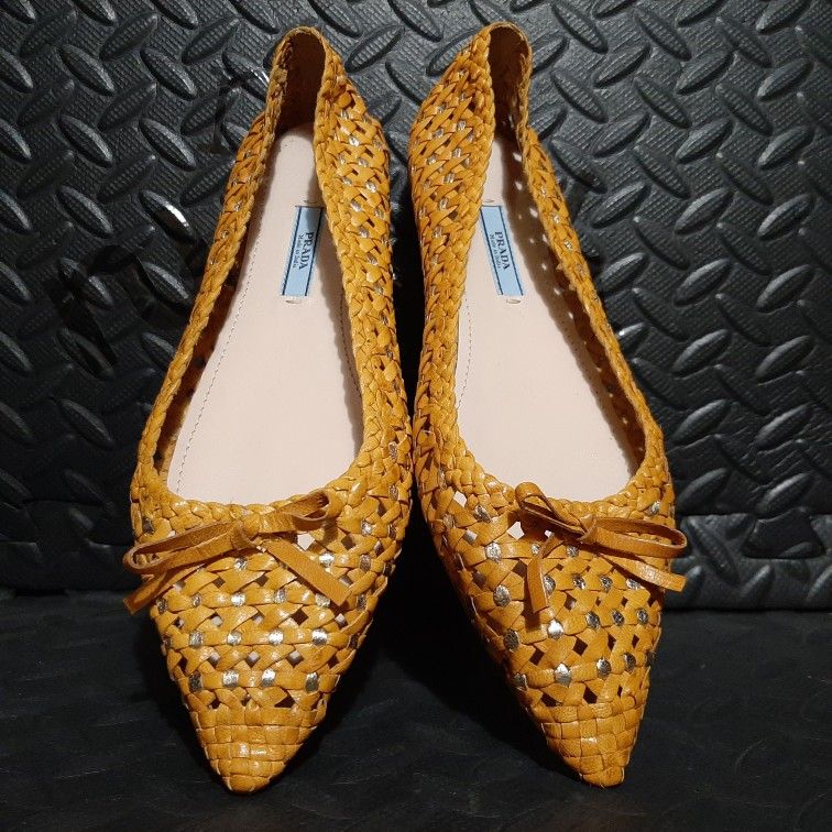 PRADA Calzature Donna woven leather slip-on PRADA size 38 US size 8 tried on......(cp251)