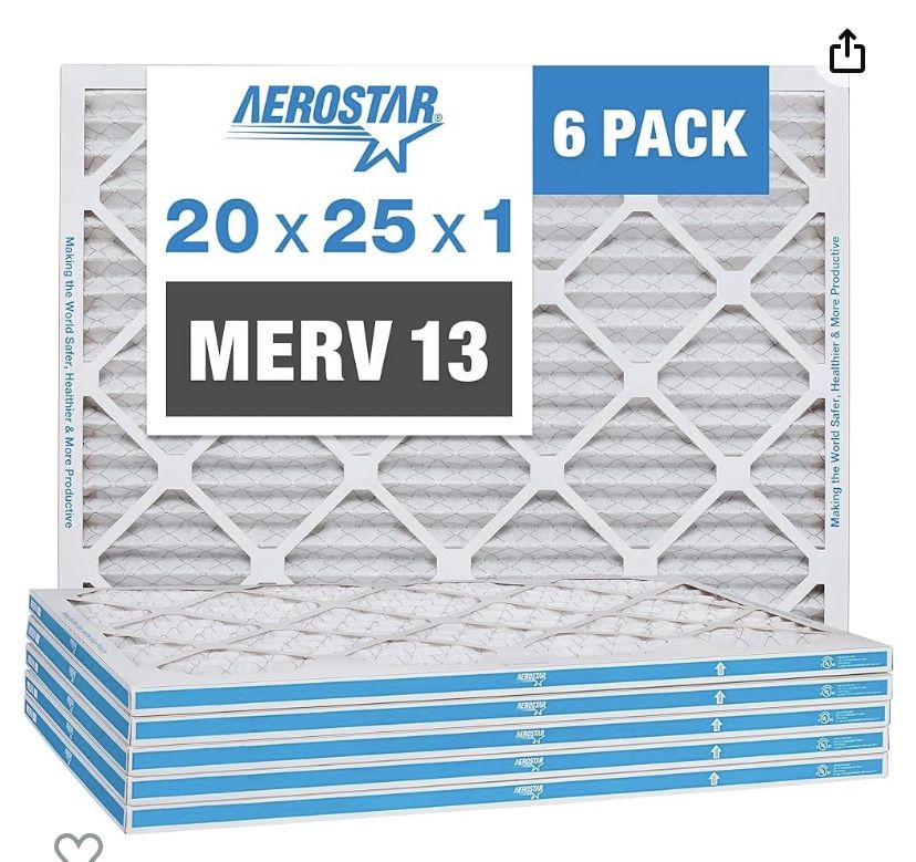 AeroStar Merv13 20x25x1” Pleaded Air Filter (6pk)