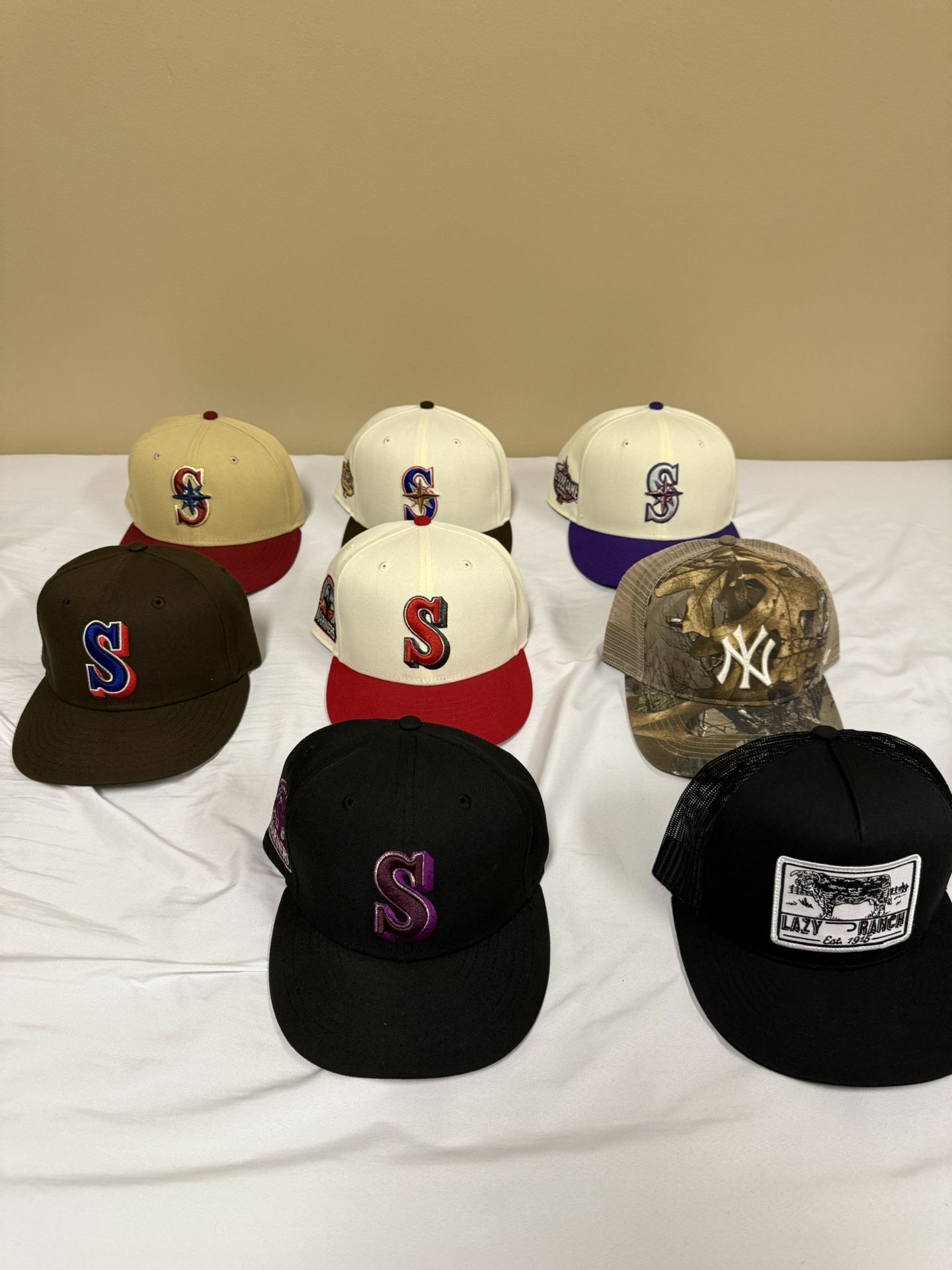 Seattle mariners fitteds. Size 7 1/8 New york & lazy ranch are snapbacks. Hats are used in good condition $35 each.