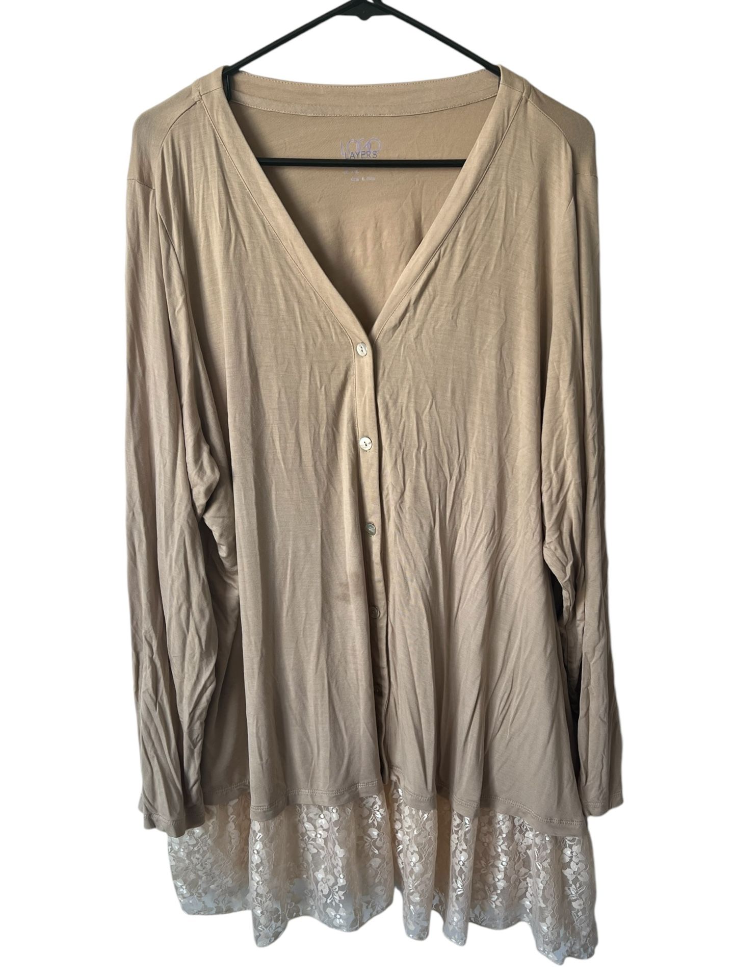 LOGO By Lori Goldstein Top Tunic Plus Size 3X Long Sleeve Lace Trim Knit Beige Small light stain in the front can be removed. Measurements are in t