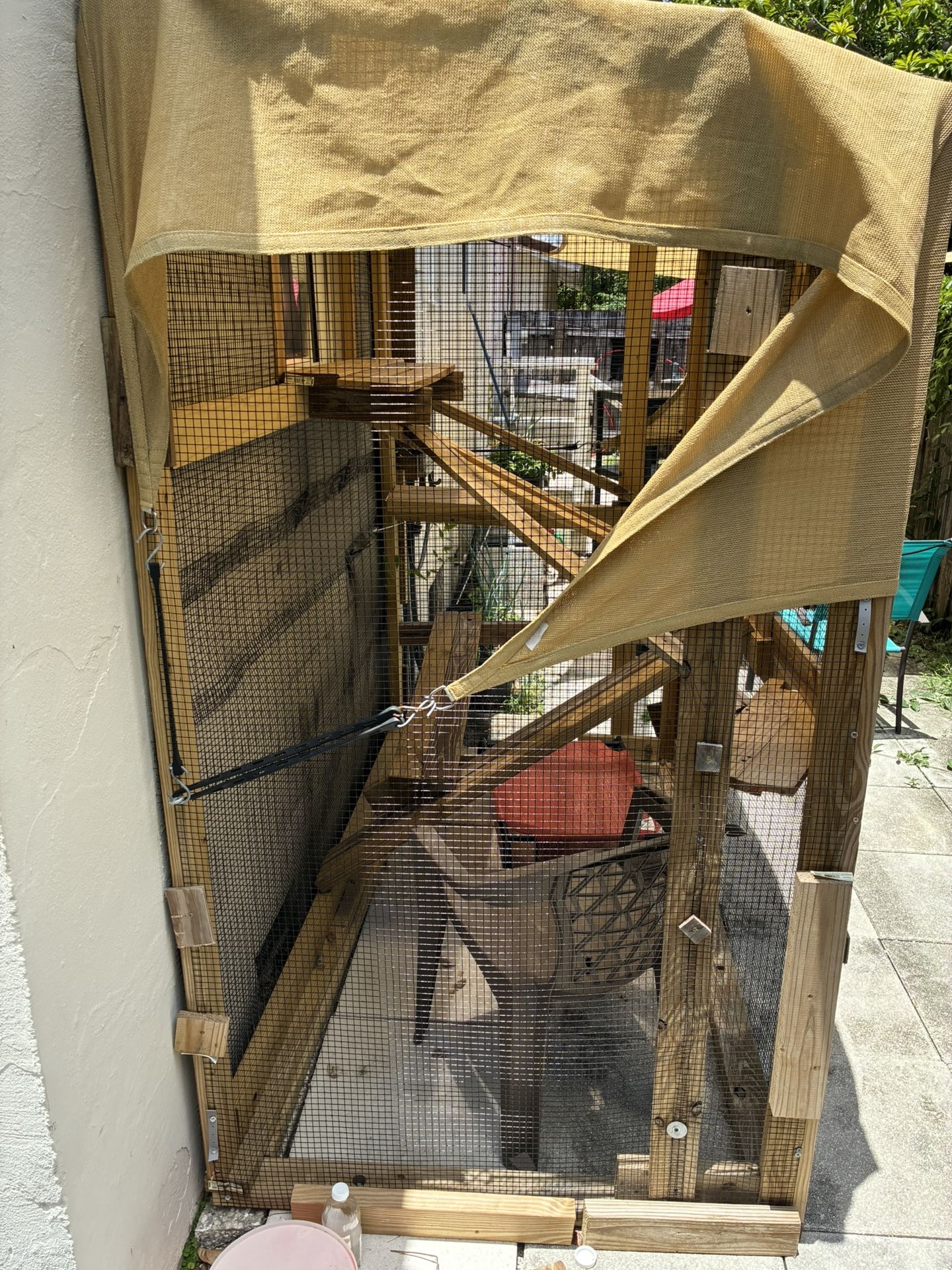 I have my cat in this cage and it is connected to my window which has a sliding door on it