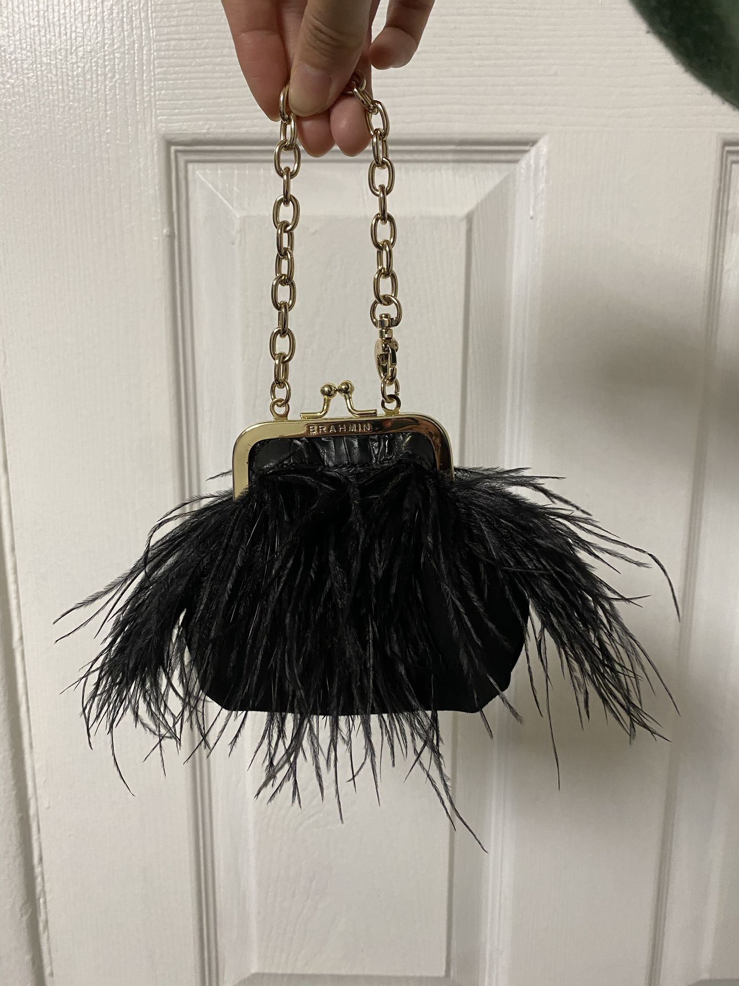 NWT BRAHMIN KIRRA BLACK ARABESQUE Kiss lock Wallet SMALL COIN PURSE CHAIN STRAP