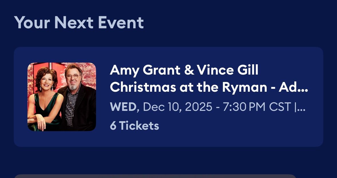 2 tix to Amy Grant and Vince Gill