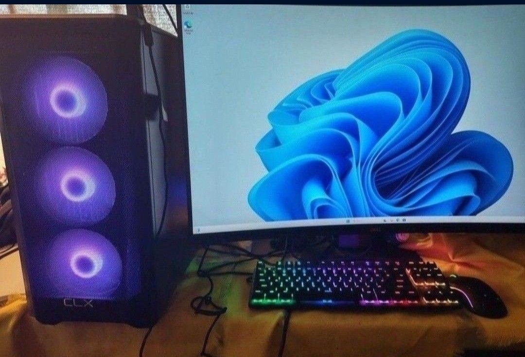 This is a extremely high-end built gaming computer and a high-end swivel curved 32" monitor this is only about 2 years old if that it has all the lights bells and whistles that you would expect from a gaming computer this has been factory reset so the only program included is the Internet the computer has the original shipping box and styrofoam included All the information is in pictures for everything we know if you got any more questions we will do our best to answer them if the ad is up it's still available we do not reply to is this available it does come from a smoke-free environment when we looked up the info on this the value for pretty similar ones were $1600-$1800+ so I'm pretty firm on price
