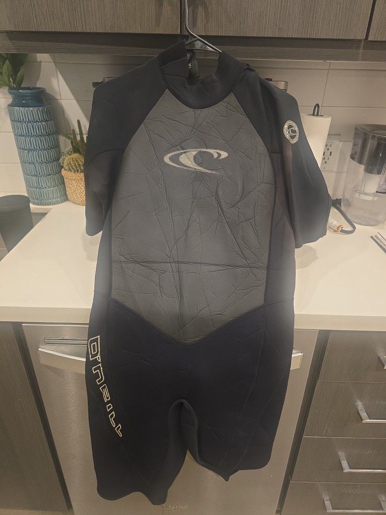 Selling mens O'Neil wetsuit, it is an XL. Has some wear and tear but still great.