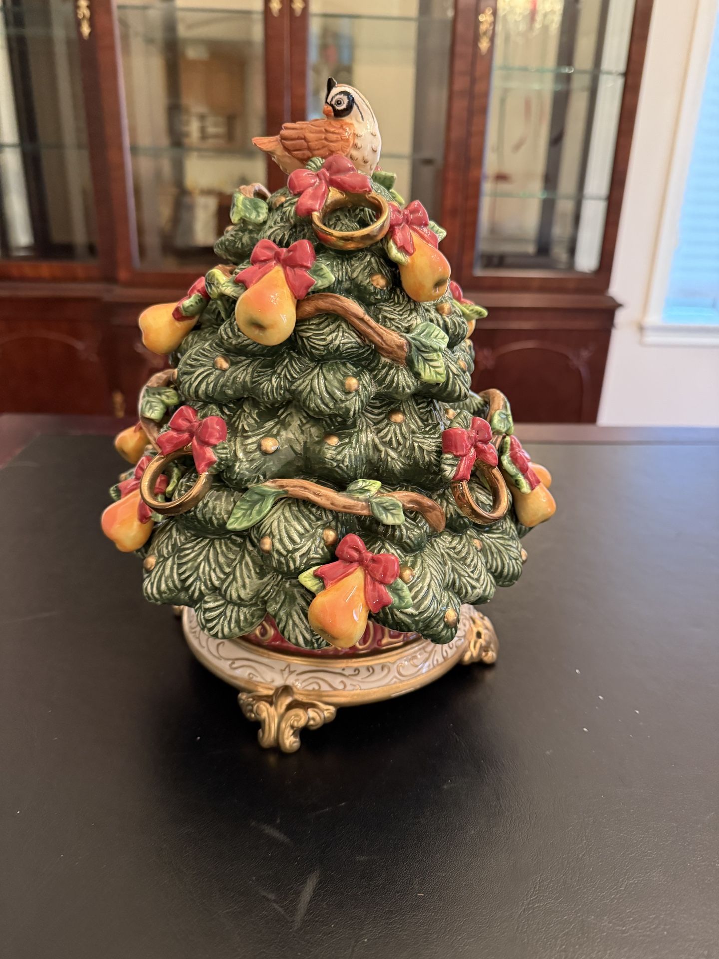 FITZ & FLOYD 12 DAYS OF CHRISTMAS - Five Golden Rings Lidded Box with original box. Numbered 415 Of 1500 and individually hand painted. Lower bottom base has small chip on inside. Comes with original packing and authenticity tag attached to lid of box. Make this a part of your festive holiday decor and start a new tradition sharing this fabulous piece of Art with family and friends. $250 Local Up Cash only