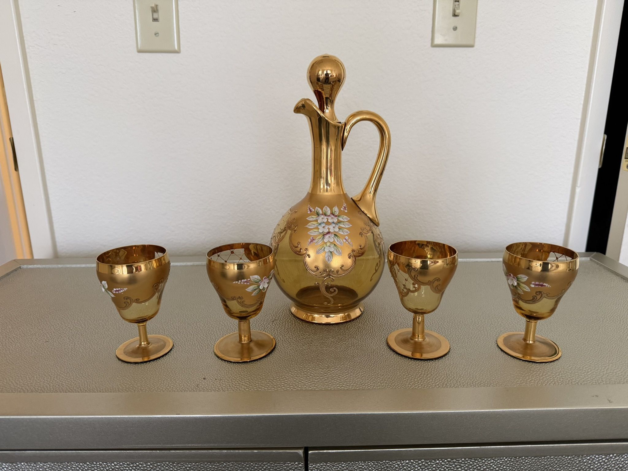 Vintage Gold Decorative Pitcher and Goblets Set