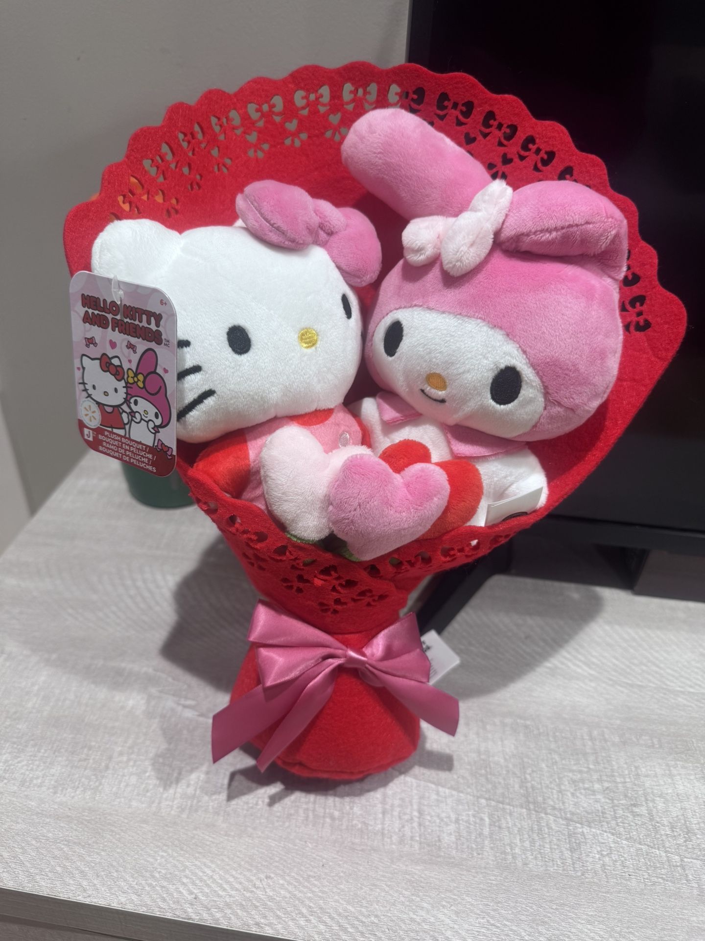 Make someone smile with this adorable Hello Kitty & My Melody plush bouquet đŸ’• Perfect for Valentine’s Day, anniversaries, birthdays, or just because, this unique arrangement features two soft Sanrio plushies wrapped in a beautiful red bouquet with a pink satin bow.