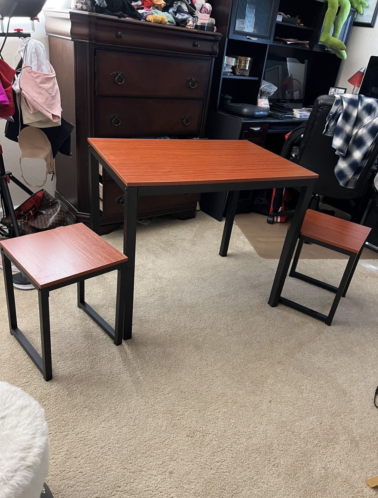 Wood 3 Piece Dining Set with Two Stools Kitchen Room,Cherry Wood Color (Delivery Available)