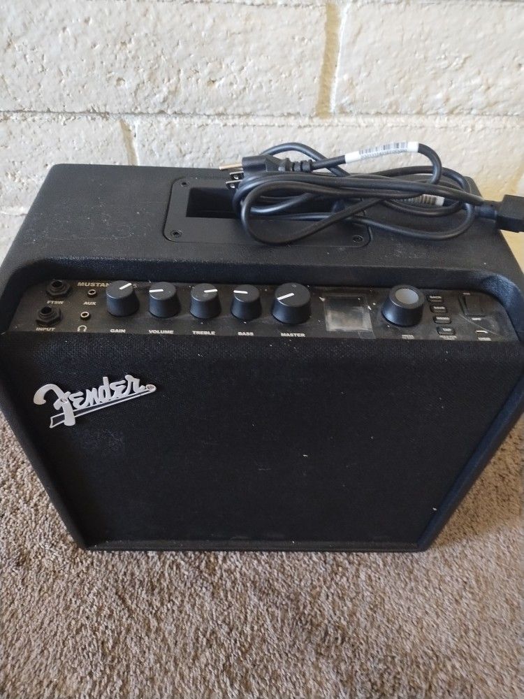 Great amp model mustang LT--25. You can check it out on YouTube they also show you how to use it. Pick up only. Nothing wrong.