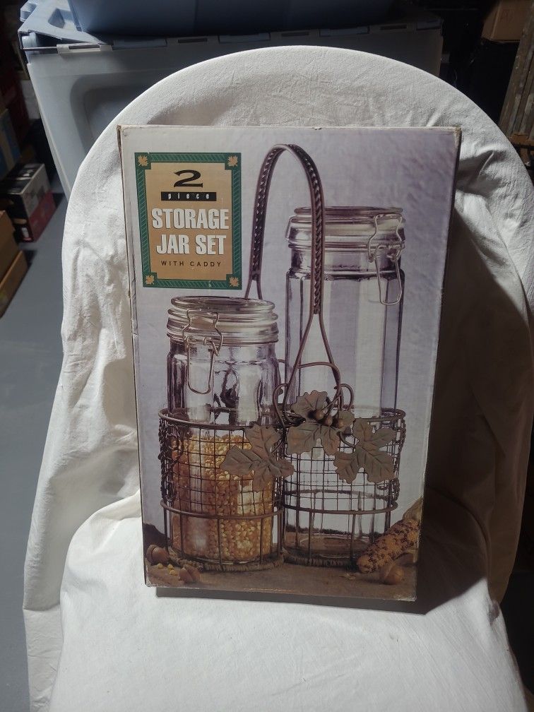 Storage Glass Jar Set With Metal Caddy