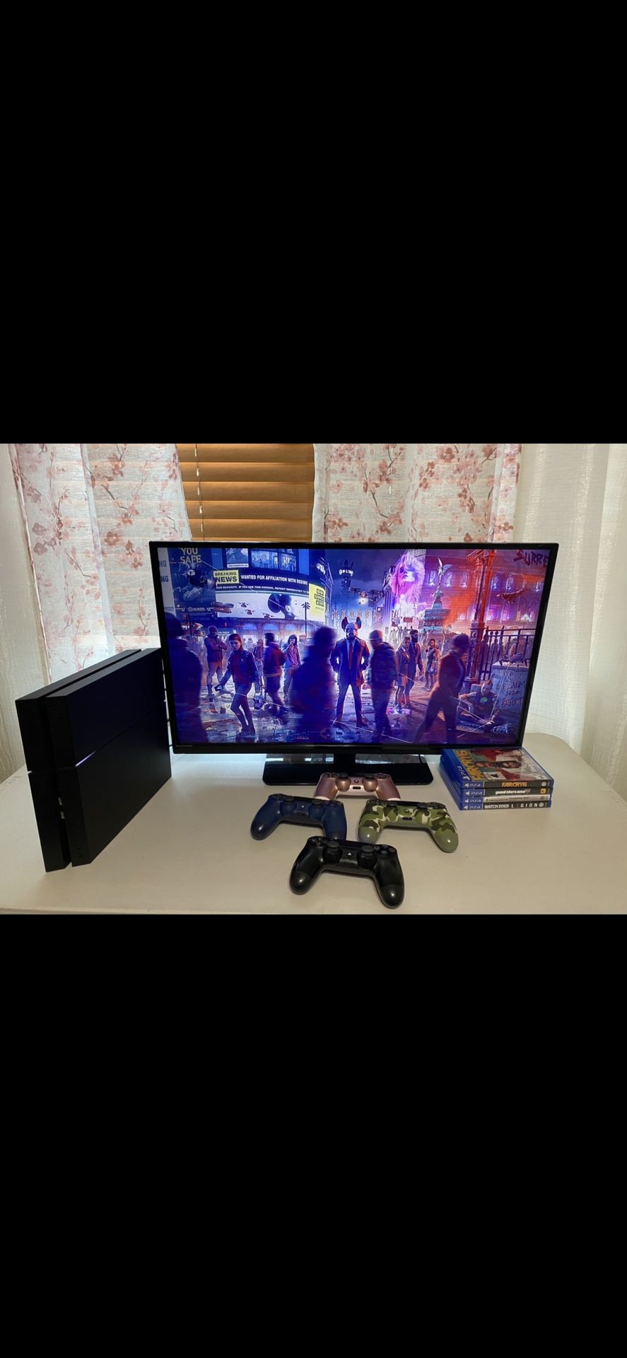 Regular PlayStation 4 well taken care of comes with four games four controllers the games are GTA V Watch Dogs Legion Rainbow Siege FARCRY 6 Cash only Serious Buyers Only