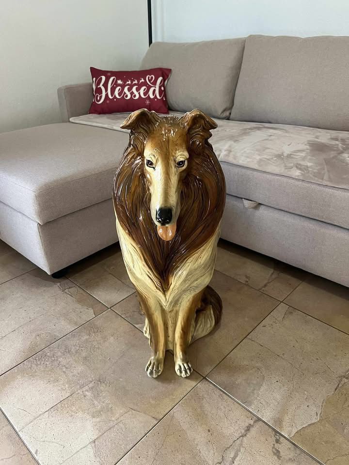 VINTAGE MARWAL 30" BIG COLLIE DOG CHALKWARE STATUE - Asking $195