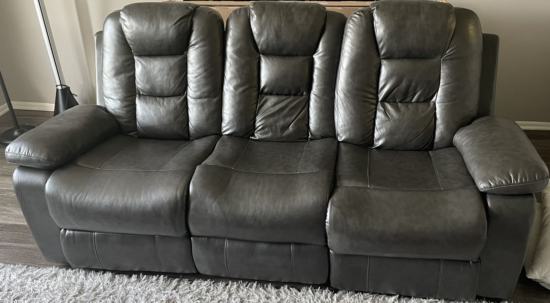 Relatively new, purchased 6 weeks ago. Decided a different type of sofa was a better fit. The back reclines as well! Paid $1,300 but definitively willing to negotiate!