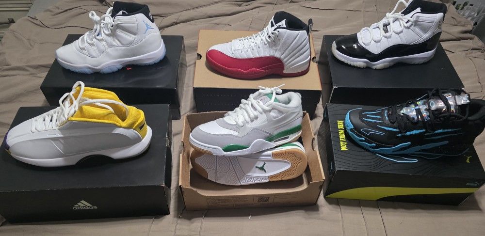 Brandnew all deadstock all size 11.5 no trades selling for 1,000.00. I will sell for $750 if I take out the black and white jordans. Again I will not separate and no trades at all.