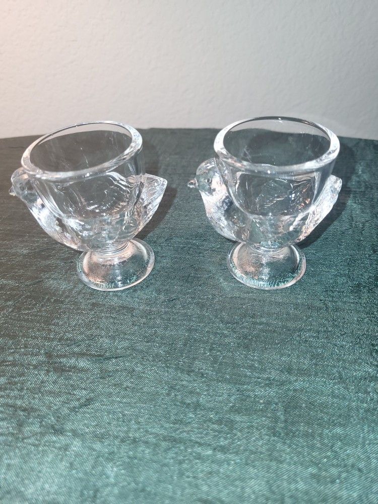 Vintage French Chicken Pressed Glass Egg Cups