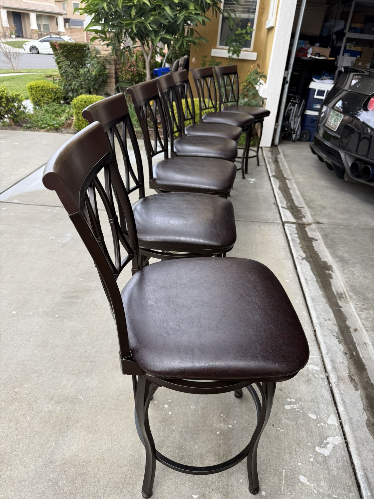 set of 7 new metal counter height bar stool swivel sturdy durable rotating 360 degree size 24” from floor to seat delivery is available for extra charge
