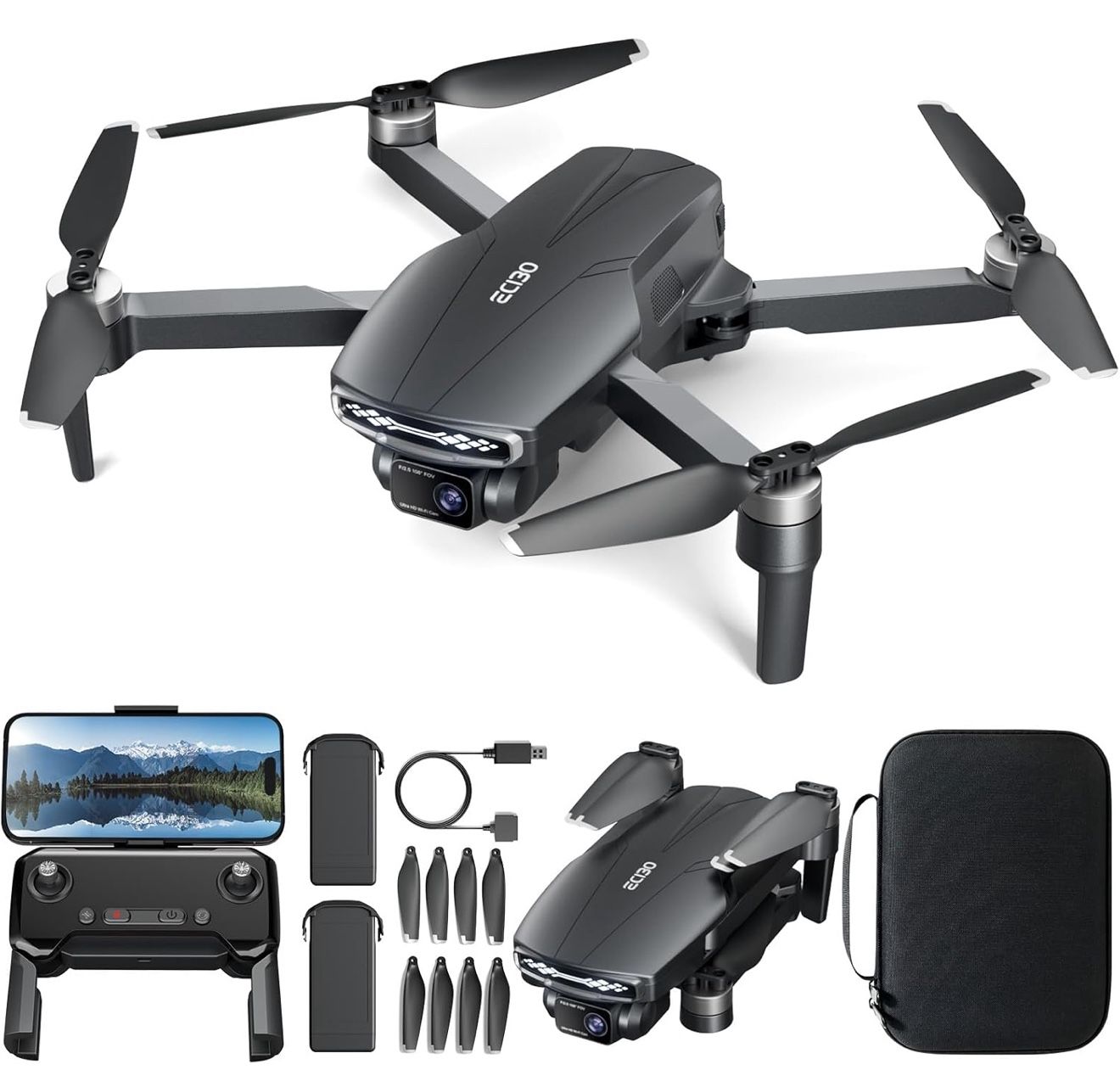 Brushless Motor Drone with Camera for Adults 4K UHD Long Range FPV Video,5G Transmission,120°FOV 90°Adjustable Lens,2Batteries,Carrying Case,Optical P