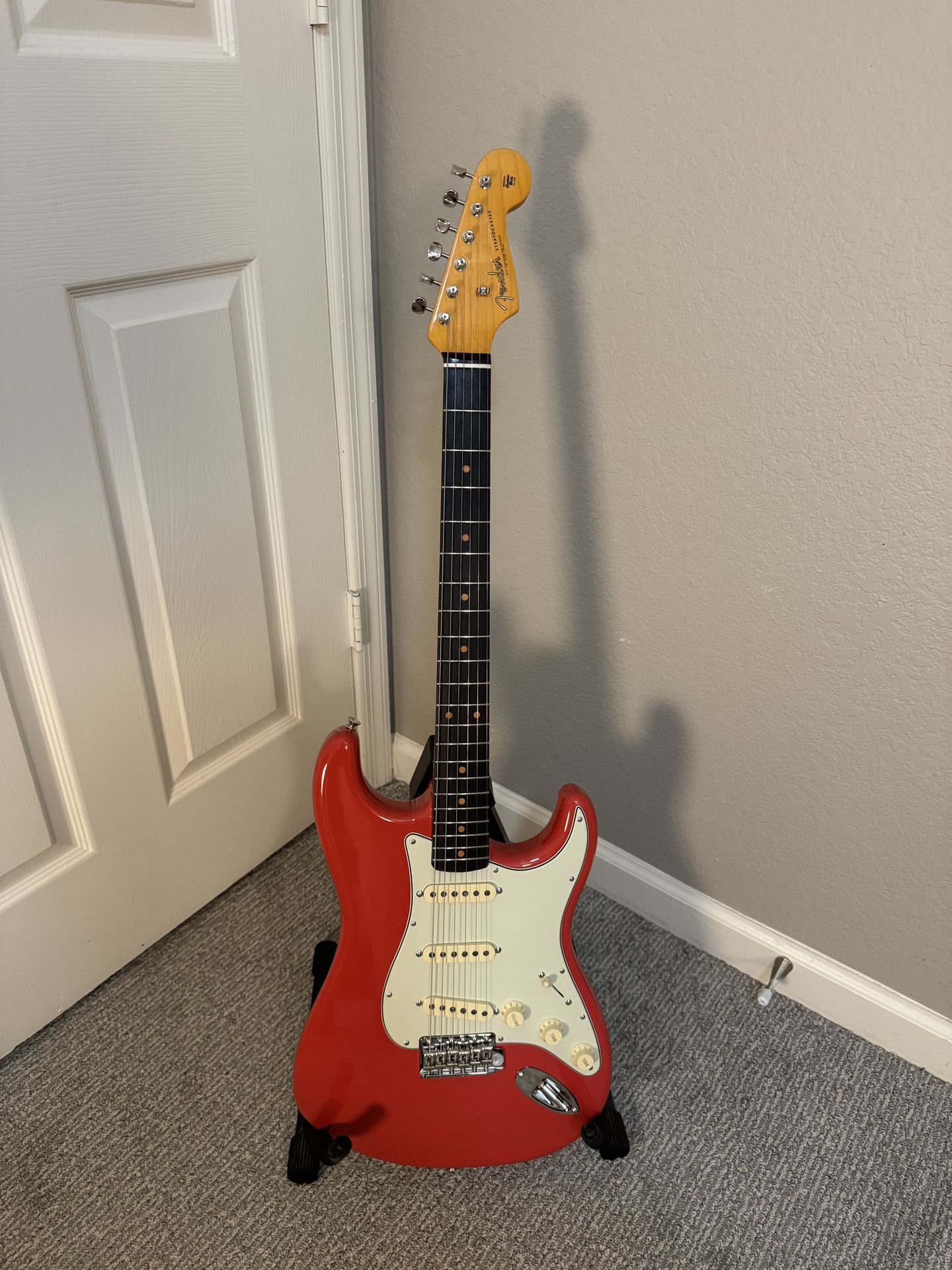 This Fender American Vintage II 1961 Strat is in excellent condition! It’s freshly set up with brand new strings, a conditioned fretboard, low action, and is perfectly intonated. This one is ready to play as is! Retails for $2500+tax, get it for half off plus it’s ready to play! I don’t have a case but I can include a guitar stand :) Selling is preferred but I’d be interested in trades for other guitars. Open to guitars + cash if the guitar you have isn’t of equal value. Let me know what you have!