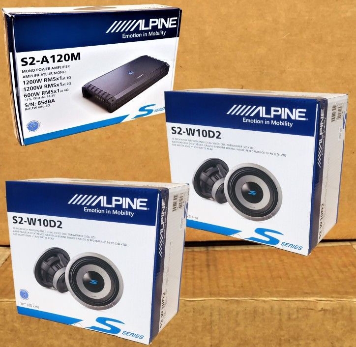 Alpine S Series Mono Subwoofer Amplifier 10" Dual Voice Coil Subwoofers 2400 Watts S2-W10D2 Package 🚨Payment Options Available🚨 No Credit Needed 🚨