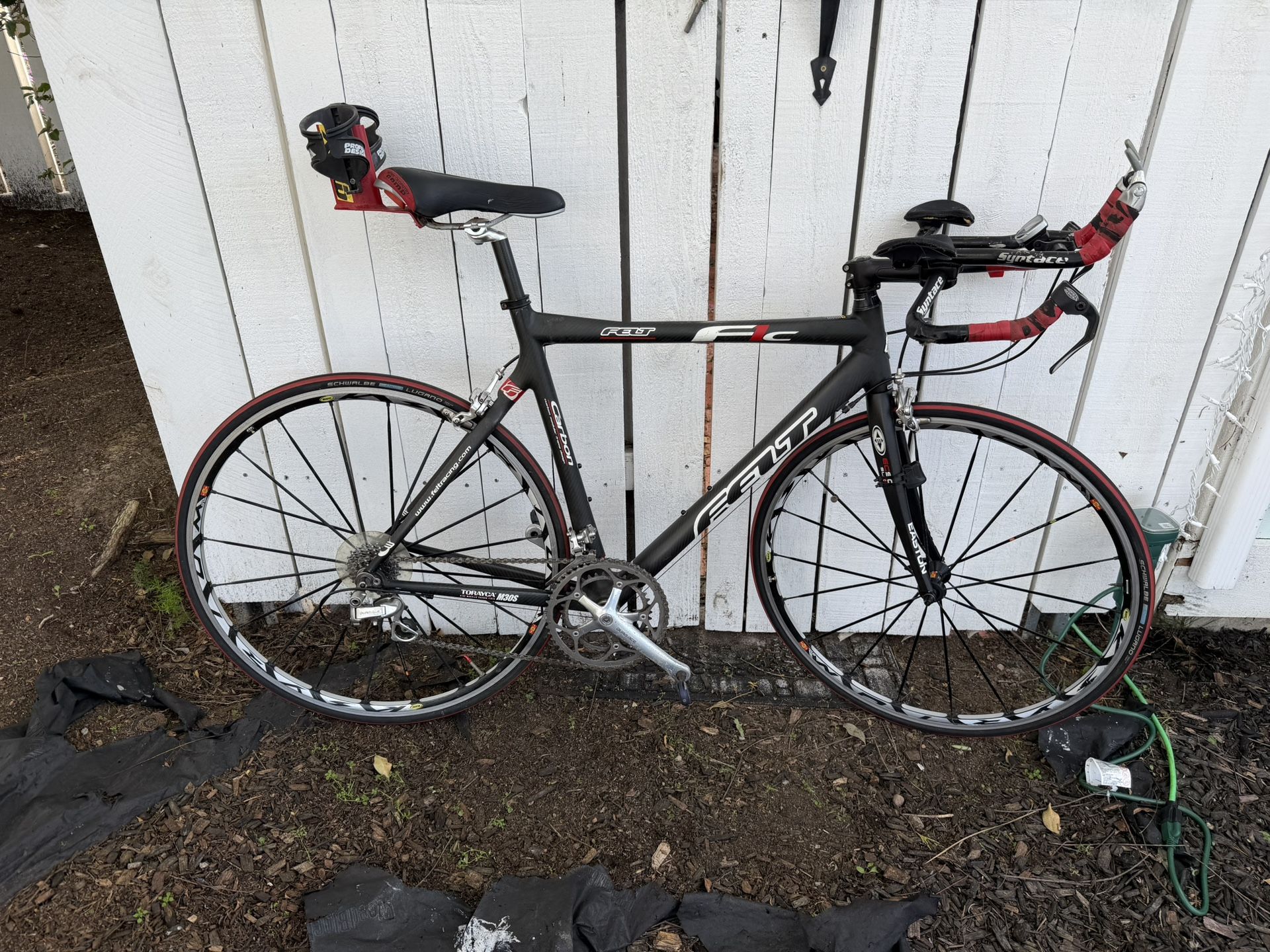 Selling Felt F1c full carbon road bike. This was Felt’s top race frame of its era — lightweight, responsive, and still an amazing ride for fitness, training, or fast group rides. Original Components include: • Felt F1c full carbon fiber frame (56cm) • Easton EC90 SLX full carbon fork (295g) • Felt carbon seatpost (SM‑1) • Felt stem + handlebar • Cane Creek integrated headset Why it’s a great buy: • Original owner — full history known • No crashes, no carbon damage • Lightweight, fast, and comfortable • Ideal for riders ~5’8”–6’0”