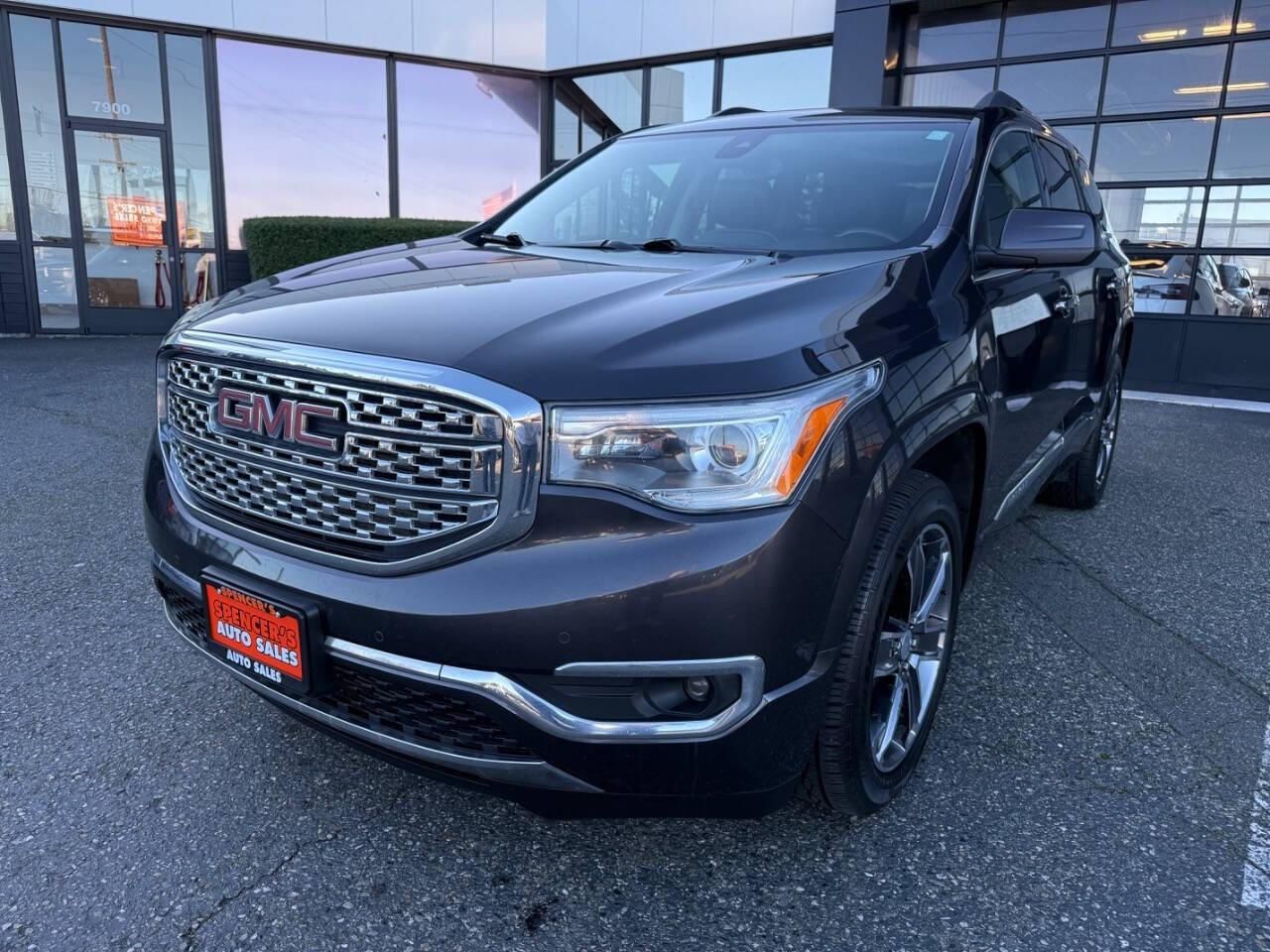 All trades welcome, creative financing options available! CALL 24/7 425-374-7726 Looking for a reliable and powerful SUV? Look no further than the 2017 GMC Acadia Denali! This top-of-the-line model is equipped with a 3.6L V6 engine, boasting an impressive 310 horsepower and 271ft. lbs. of torque. And with its 6-speed shiftable automatic transmission, you'll experience smooth and effortless shifting. <br /><br />But the Acadia Denali isn't just about power, it's also packed with luxury features to enhance your driving experience. Step inside and you'll find premium leather seats, heated and ventilated front seats, and a heated steering wheel for those chilly mornings. And with its spacious and versatile interior, you'll have plenty of room for passengers and cargo.<br /><br />Not only does the Acadia Denali excel in performance and comfort, it also prioritizes safety. With features like blind spot monitoring, lane departure warning, and forward collision alert, you can drive with peace of mind knowing your family is protected.<br /><br />So why wait? Come test drive the 2017 GMC Acadia Denali today and experience the ultimate combination of power, luxury, and safety. With its sleek design and impressive capabilities, it's the perfect SUV for any adventure. Don't miss out on this incredible vehicle - visit us at [dealership name] and drive away in your dream car!