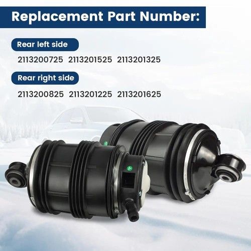 Compatible Vehicle: Rear Air Spring Compatible with Mercedes Benz E-CLASS W211 2-MATIC 2002-2009 Models: E280 E300 E320 E350 E500 E550 E55 AMG E63 AMG. Air Bags Suspension Kit also Compatible with Mercedes Benz S-Class W219 2-MATIC 2007-2011 Models: CLS350, CLS500, CLS550, CLS55 AMG, CLS63 AMG Reference OEM Number——Rear left side: 211(contact info removed), 211(contact info removed), 211(contact info removed). Rear right side: 211(contact info removed), 211(contact info removed), 211(contact info removed). rear springs suspension air bag In-Situ Installation: Our air ride spring bag is the same as the original, direct in-situ replacement of the original one without any modification Excellent Quality: The air ride is made of imported high density rubber, more durable and better load performance than normal air suspension, provide you with better drive experience after replacement