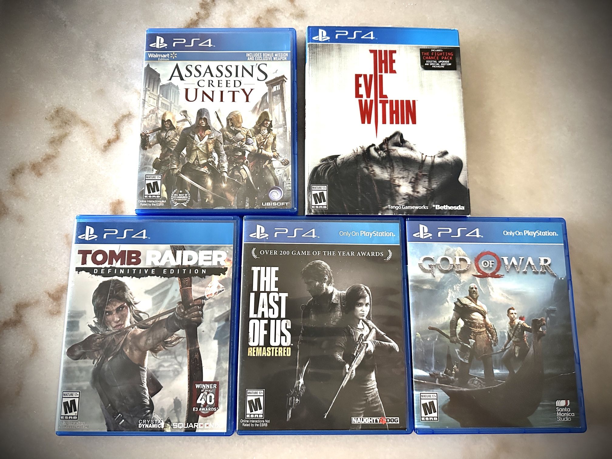 The Last of Us (Remastered) Tomb Raider (Definitive Edition) The Evil Within God of War Assassin’s Creed Unity