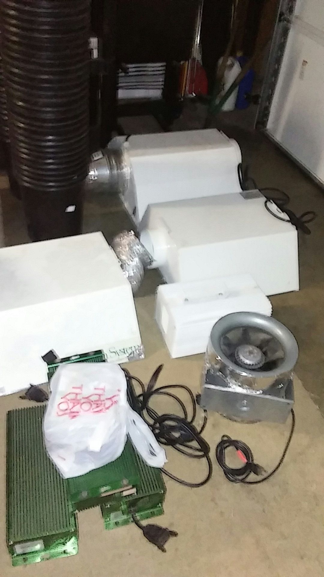 5 1000w lights and ballasts.fan and extra pieces.150 per light and ballast.sun system lights and galaxy ballasts.
