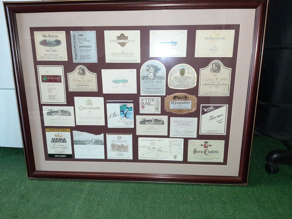 Bottle labels from many wineries, framed just for you. All this for $39.00. The frame alone cost $60.00.