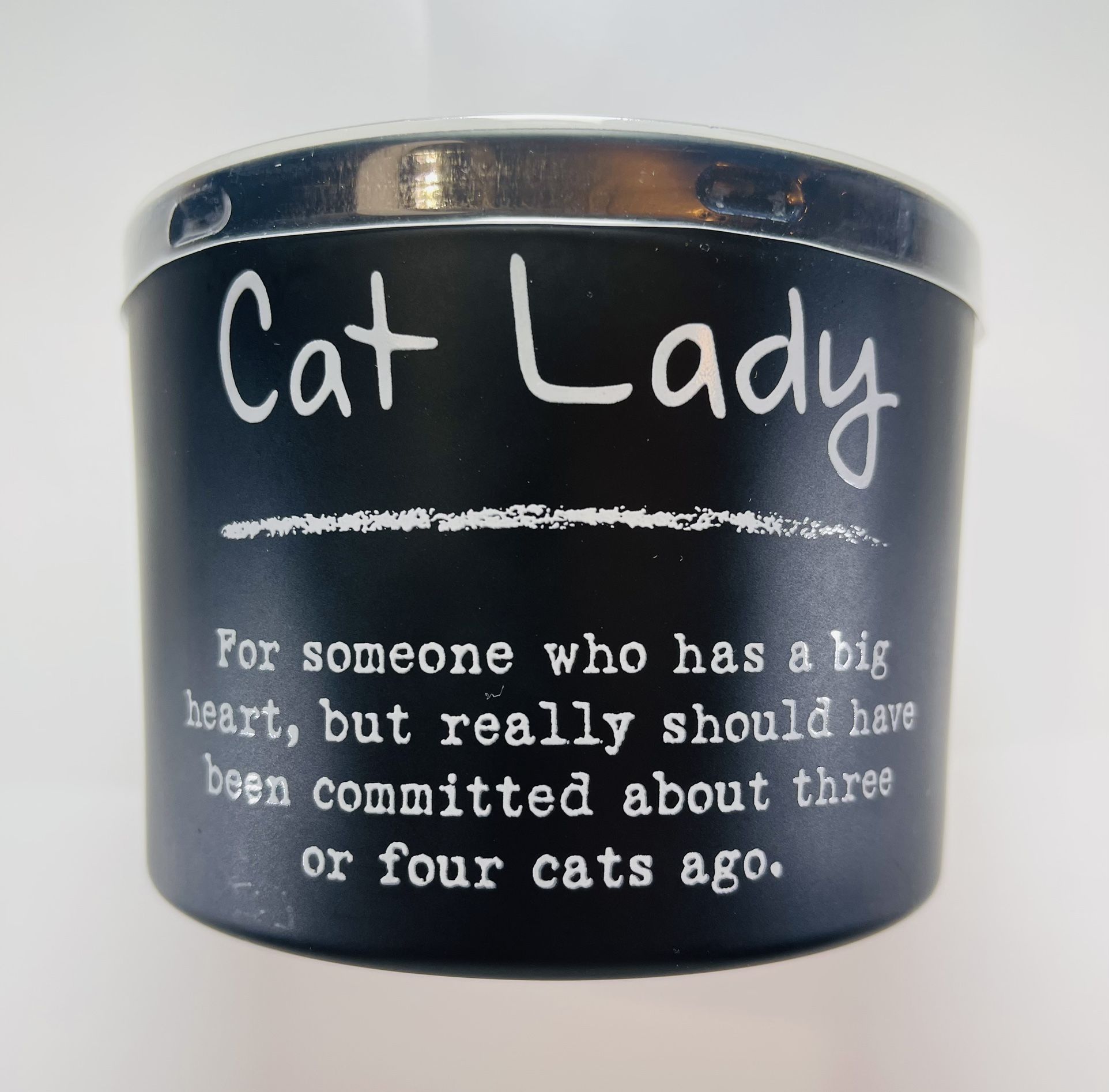 The Primitives by Kathy Soy Based Wax Candle in the Cat Lady design features a modern and stylish black jar with a sea salt & sage scent. This scented candle is a perfect gift for the Cat Lady in your life and includes multiple wicks for a longer burning time of 26 hours.