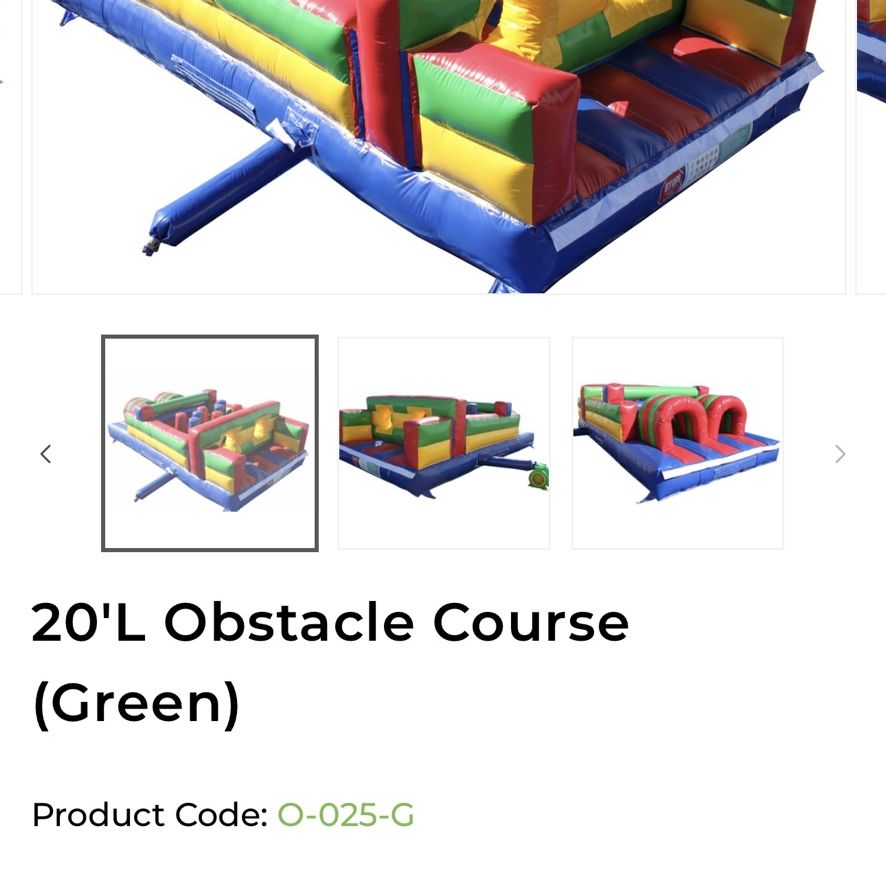 Obstacle Course Moonwalk for Sale. Picture as shown. Purchased May 2025. No holes no defects. Was for indoor use only and it’s kept in a garage for storage. Brand new