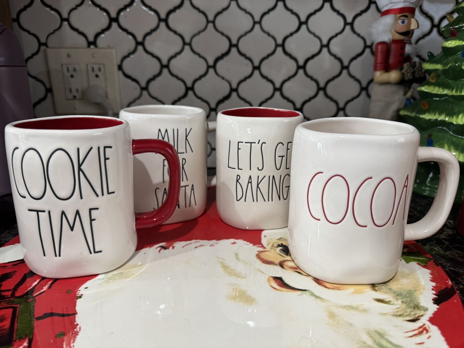 Total of 4 Rae Dunn Christmas mugs (Cookie time, Cocoa, Lets get baking, & Milk for Santa) Christmas decor Coffee decor Coffee station decor hot chocolate station decor hot cocoa station decor gingerbread decor