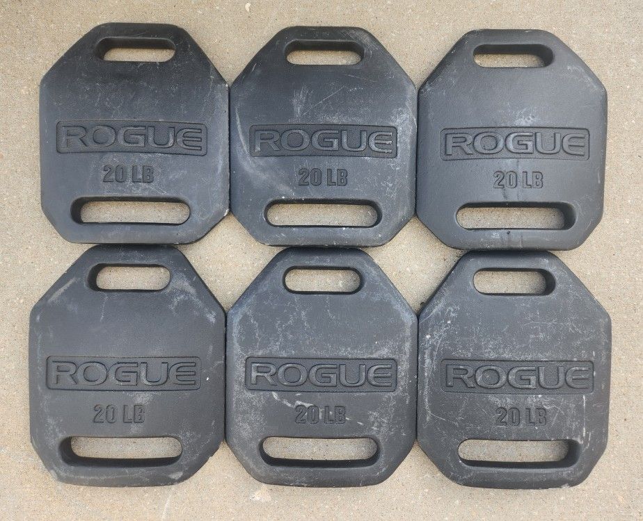 GREAT CONDITION! Inventory includes: 6 - 20lb Rogue Echo Weight Vest Plates ($100 a pair) Retail is over $550 after tax and shipping, but first $300 cash takes them all, or splitting them up in pairs for $100 a pair. Delivery available. I also have other Rogue equipment, Olympic bars, bumper plates, rubber and iron dumbbells, kettlebells, racks, benches, weighted bars, treadmills, etc. just look at my other items or send me a message about them. Echo Vest Plates are the economy version of our premium USA Cast Weight Vest Plates, offering a similarly ergonomic, military-inspired design in three weight increments: 5LB, 10LB, 20LB. The double-curved shape of these plates allows much greater comfort and freedom of movement for the user compared to traditional flat metal vest plates. The design was inspired by examining the armor utilized in modern bulletproof vests -the same type trusted by police and military personnel for years. Each increment of Echo Vest Plate measures 11.3" in length x 9.3" in width, and includes a quality black E-coat finish, Rogue branding, and convenient carry handles on both ends. They are compatible with the 5.11 TacTec Plate Carrier and other similar weight vests on the market (be sure to check your vest’s measurements before purchasing). When added to a standard 2.5LB vest, the three available plate size pairs create total weights of 12.5 LB, 22.5 LB, and 42.5 LB, respectively.