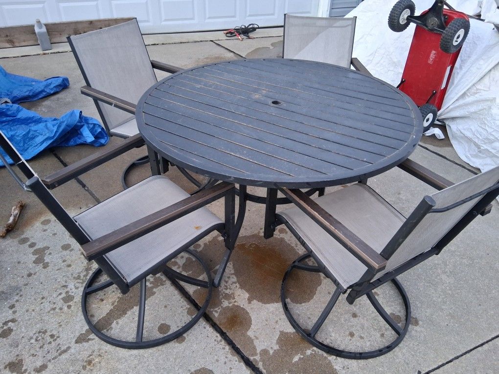 Hello. I am offering for sale, a patio set with 4 chairs. This set is in great condition and still has years of use left in it. The price is $45. If interested, just call or text me at 248-EIGHT ZERO EIGHT-9076. Thanks for looking and have a blessed day.