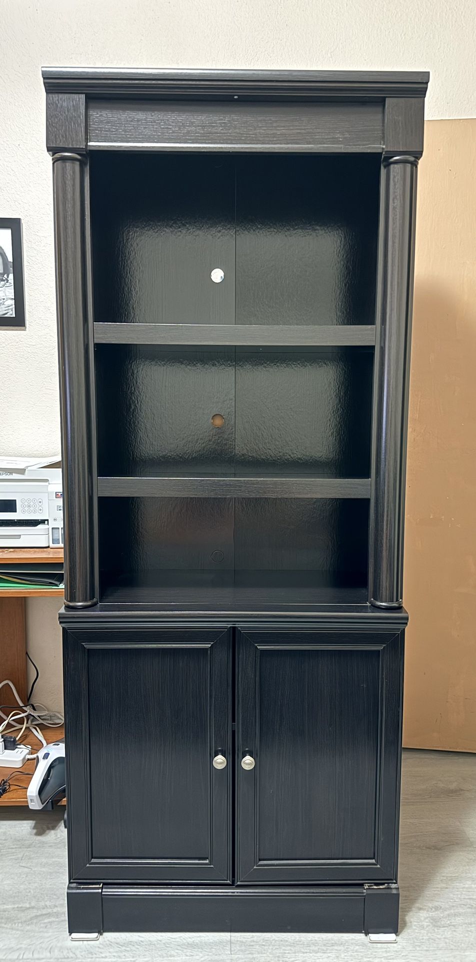 *PRICE IS FIRM* A nice storage which can function as a bookshelf or items you would like to store away - Brushed in “Wind Oak Finish” - Has minor scruffs from the base in the front; backside has some paint chips. - Has been used about a year Aside from the those, overall condition is “Very Good” Cash/Zelle pickup only!